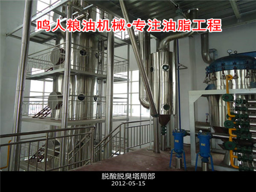 連續(xù)式物理脫酸脫臭裝置既能高效快速地脫除脂肪酸等臭味組份,又能使油脂具有良好的風味。同時,該塔具有節(jié)約直接蒸汽(水蒸氣用量僅為常規(guī)塔的30-50%),防止油脂水解的優(yōu)點,為加工高質(zhì)量的油脂提供了工藝和設(shè)備保證。